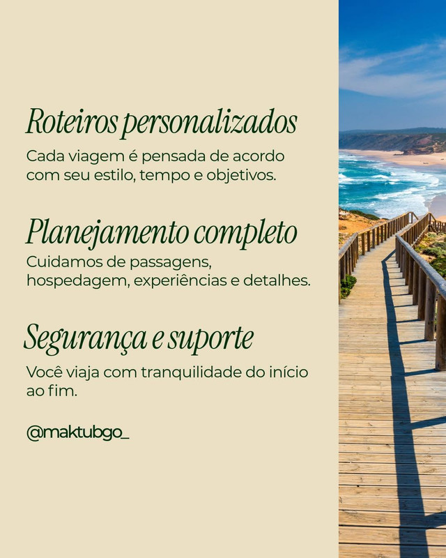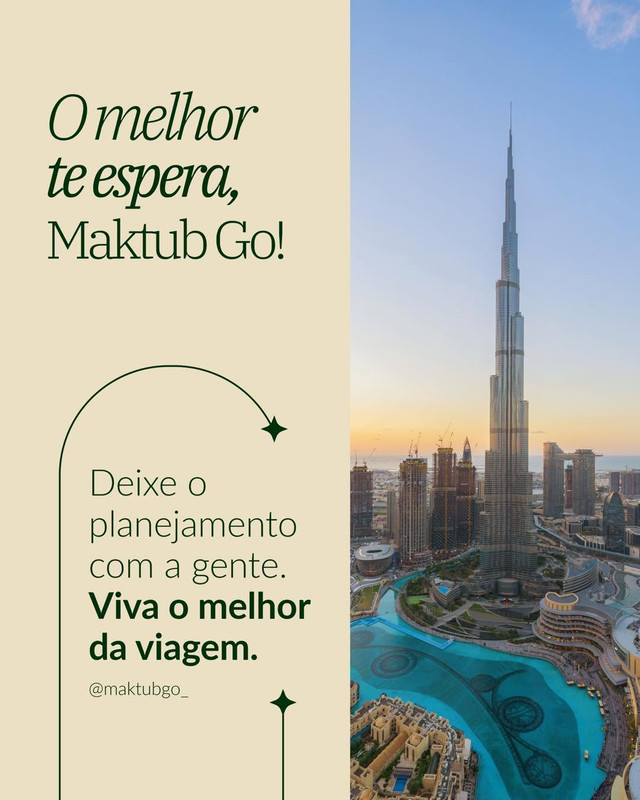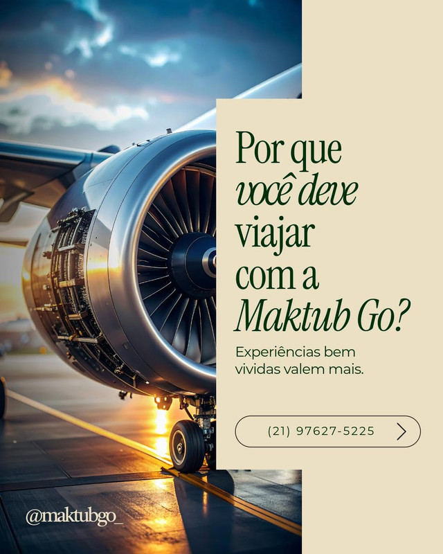 A Maktub Go – Agência de Viagens transforma sonhos em destinos, oferecendo serviços completos, personalizados e seguros para que cada viagem seja vivida com tranquilidade, encanto e a certeza de que tudo acontece como tem que ser.